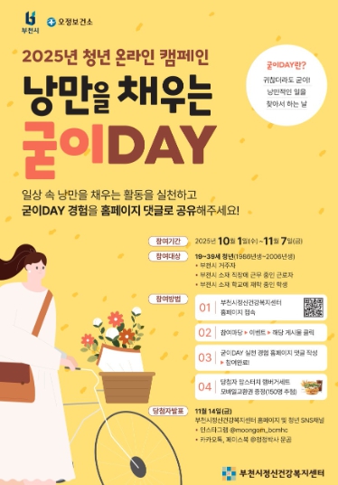부천시, 청년 정신건강 위한 ‘낭만을 채우는 굳이DAY’ 캠페인 개최