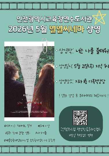 [뉴스앤톡] 인천광역시교육청연수도서관은 5월의 다양성영화 '별별씨네마'로 마티아스 피녜이로 감독의 ‘너는 나를 불태워’를 상영한다.
