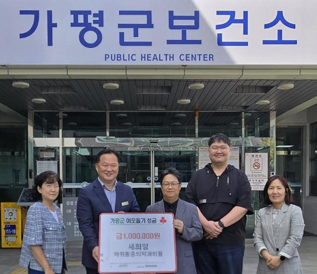 [뉴스앤톡] 가평군 가평읍 소재 새희망마취통증의학과의원이 집중호우로 피해를 입은 주민들을 돕기 위해 성금 100만 원을 가평군에 기탁했다.