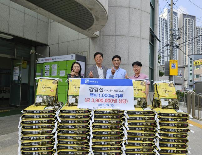 [뉴스앤톡] 수원시 장안구 정자1동에 소재하는 SK마이크로웍스 소속 강경선 부장은 민족의 대명절인 추석을 맞아 지역 내 어려운 이웃들에게 따뜻한 나눔을 전하기 위해 지난 30일 정자1동행정복지센터에 쌀 1,000kg을 기부했다.