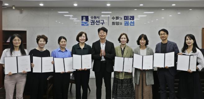 [뉴스앤톡] 수원시 권선구는 지난 24일, 권선구청 구청장실에서 김종석 구청장을 비롯해 행정의 최일선에서 헌신·봉사하고 있는 통장 8명이 참석한 가운데 ‘2025년 하반기 통장자녀 장학금’전달식을 가졌다.