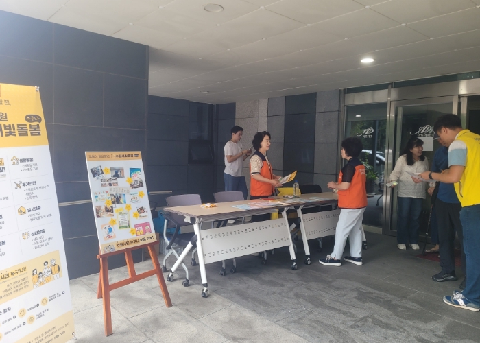 [뉴스앤톡] 수원시 영통구청은 지난 15일부터 1주일간 광교1동과 원천동 지역사회보장협의체와 협력하여 '수원새빛돌봄(누구나)' 사업을 홍보했다.