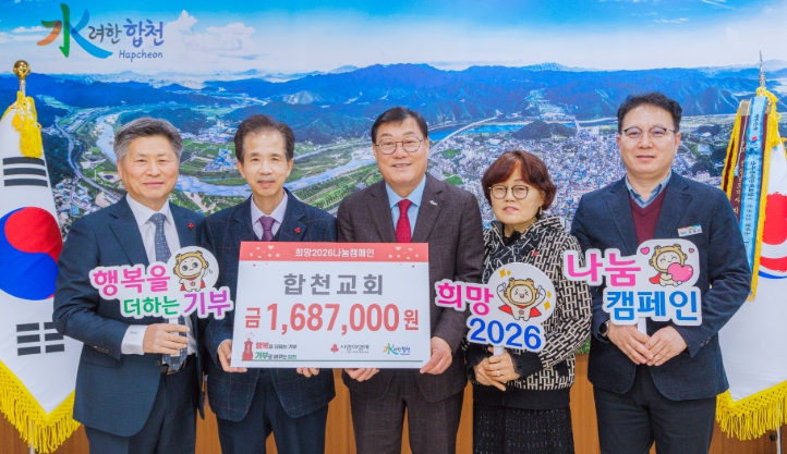 한편 합천군은 2025년 12월 1일부터 2026년 1월 31일까지 희망2026나눔캠페인 이웃돕기 성금 집중 모금 기간을 운영하고 있다.