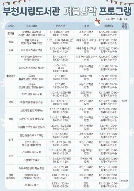 | ▲ 부천시립도서관 겨울방학 프로그램 안내 이미지 |