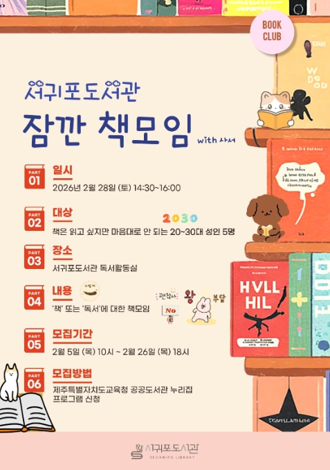 서귀포도서관 관계자는 “사서와 함께하는 편안한 대화를 통해 독서에 대한 진입장벽을 낮추고, 지역 내 젊은 세대들이 ‘책’이라는 공통 매개체로 연결되는 건강한 독서 공동체가 형성되길 기대한다”라고 밝혔다.