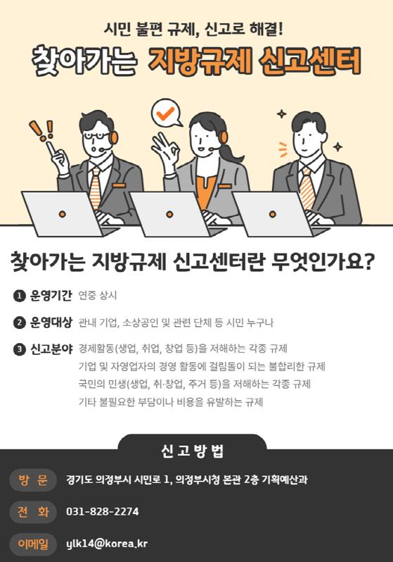 신고센터는 관내 기업과 소상공인뿐만 아니라, 의정부 시민이라면 누구나 자유롭게 신고할 수 있다. 시는 특정 분야에 국한하지 않고 시민의 목소리를 폭넓게 청취해 현장에서 체감하는 불합리한 규제를 사각지대 없이 발굴할 방침이다.