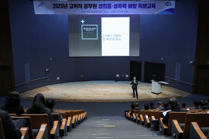 [뉴스앤톡] 경기도는 22일 경기도청 다산홀에서 김동연 경기도지사를 포함해 고위직 공무원 약 50명을 대상으로 ‘직장 내 성희롱·폭력 예방 특별교육’을 실시했다.