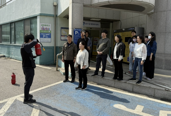 이번 훈련은 화재 발생 시 신속한 초기 대응과 인명피해 최소화를 위해 실시했으며, 직원뿐만 아니라 민원인 등 25여 명이 함께 참여했다.