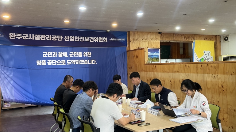 [뉴스앤톡] 완주군시설관리공단이 최근 근로자위원과 사용자위원 등 총 9명이 참석한 가운데 ‘2025년 3분기 산업안전보건위원회’를 열고 주요 현안을 논의했다.
