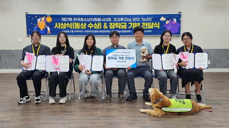 [뉴스앤톡] 솔내청소년센터는 센터 소속 청소년 봉사동아리인 ‘견과류(Dog With Youth)’가 KB라이프생명사회공헌재단과 한국중등교장협의회가 주최한 ‘제27회 전국청소년자원봉사대회’에서 동상을 수상했다고 22일 밝혔다.