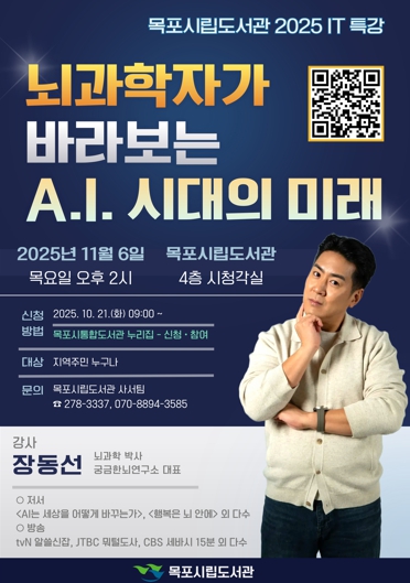 [뉴스앤톡] 목포시립도서관은 오는 11월 6일 오후 2시, 급속히 확산되는 인공지능 시대에 발맞춰 지역 주민을 위한 특별 강연을 개최한다.