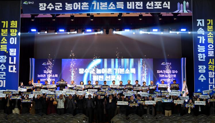 [뉴스앤톡] 장수군은 8일 한누리전당 산디관에서 ‘농어촌 기본소득 비전 선포식’ 행사가 성황리에 개최됐다고 밝혔다.