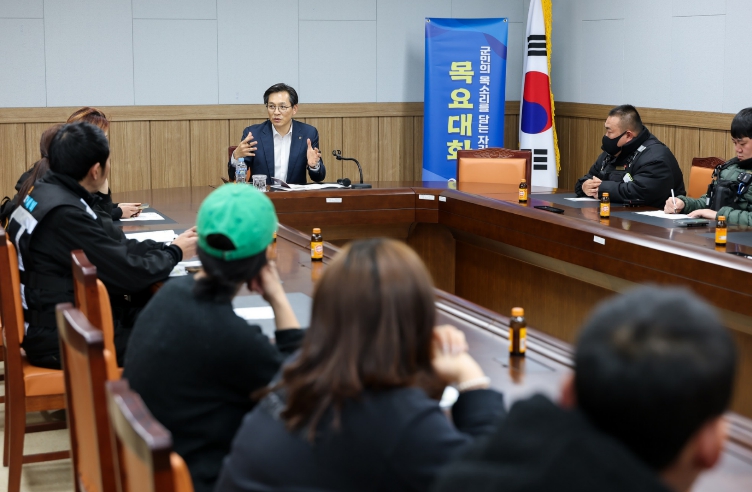 [뉴스앤톡] 영암군이 20일 삼호읍행정복지센터에서 ‘소통의 창을 여는 시간, 목요 대화’를 열어 배달대행기사 등 배달업 종사자들의 애로사항을 듣고, 안정적 근무 환경 조성을 위해 다양한 이야기를 나눴다.