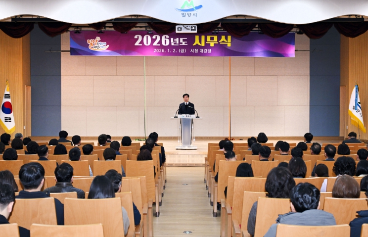 [뉴스앤톡] 밀양시는 2일 시청 대강당에서 본청 및 읍면동, 직속 기관, 산하기관 직원 등 300여 명이 참석한 가운데 2026년 시무식을 개최하고 새해 업무를 시작했다.