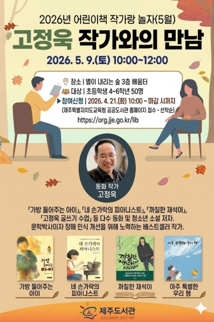 제주도서관 관계자는 “어린이들이 작가와의 만남을 통해 책을 더욱 친근하게 느끼고 독서의 즐거움을 발견하는 계기가 되길 바란다”고 말했다.