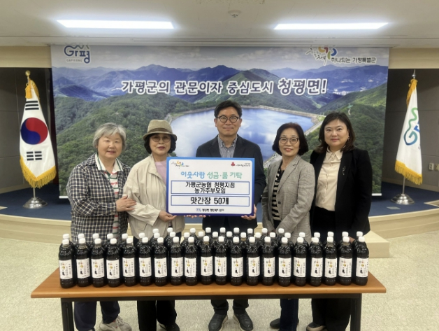 [뉴스앤톡] 가평군농협 청평지점 농가주부모임이 20일 지역 내 어려운 이웃을 위해 직접 만든 맛간장 50개를 청평면에 기탁했다.