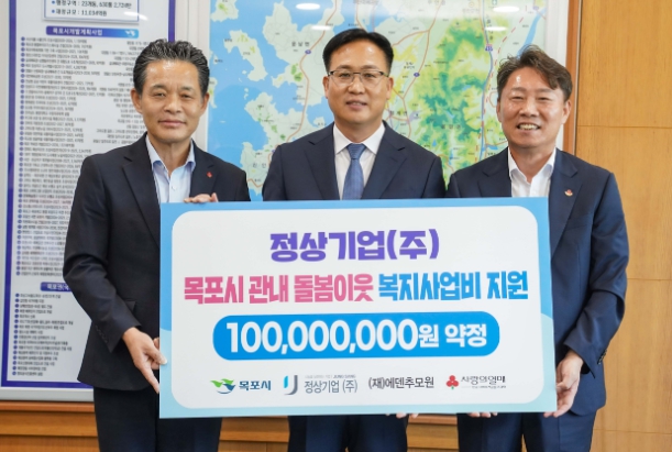 [뉴스앤톡] 목포시는 정상기업(주)(대표 이정오)이 지난 29일, 목포시 관내 돌봄이웃 복지사업을 위해 2,500만 원씩 4회에 걸쳐 총 1억 원을 전남사회복지공동모금회에 지정기탁했다고 밝혔다.