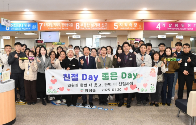 [뉴스앤톡] 창녕군은 1월 20일 민원봉사과 전 직원을 대상으로 ‘친절․청렴 다짐 데이’를 실시하고 군민에게 신뢰받는 행정서비스 제공을 위한 친절 실천 의지를 재확인했다.