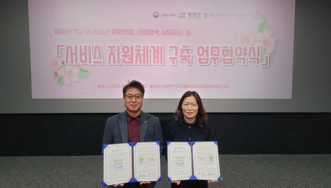 [뉴스앤톡] 평창군학교밖청소년지원센터와 HAPPY700평창시네마는 24일, 관내 ‘학교 밖 청소년’ 및 ‘학업 중단 숙려 청소년’들이 안전하고 건강한 사회 구성원으로서 성장할 수 있도록 지원하기 위하여 서비스 지원체계의 확충을 위한 업무협약식을 가졌다.
