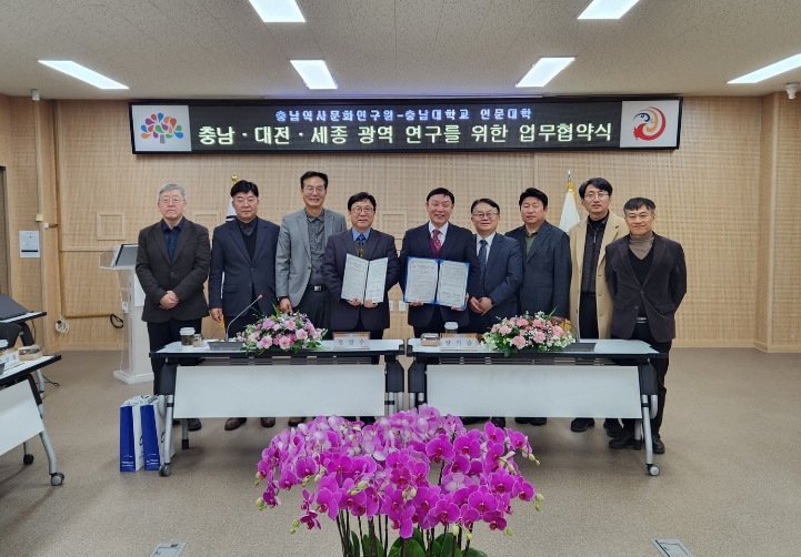 [뉴스앤톡] 충남역사문화연구원(원장 장기승)은 지난 1월 13일 충남대학교 인문대학(학장 정양수)과 ‘충남·대전·세종 초광역 인문사회 연구 강화를 위한 업무협약’을 체결했다.