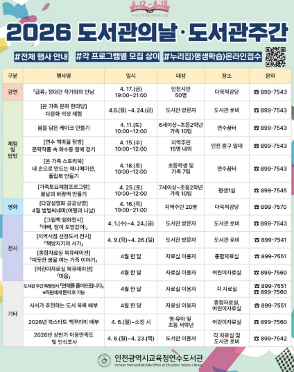 [뉴스앤톡] 인천광역시교육청연수도서관은 4월 6일부터 24일까지 도서관 로비에서 ‘온 가족 문화 한마당 : 다문화 의상 체험’ 행사를 운영한다.