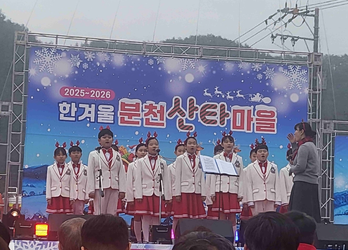 [뉴스앤톡] 봉화군 소천면 분천산타마을에서 지난 20일(토) 개최된 ‘2025 한겨울 분천산타마을 개장식’ 이 지역주민과 관광객들의 열띤 호응 속에 성황리에 열렸다. 이번 개장 축하공연에는 봉화교육지원청이 운영하는 봉꽃송이 청소년 합창단이 참여하여 한겨울 추위를 녹이는 따뜻한 무대를 선사했다.