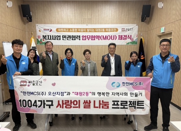 이번 협약은 민·관 협력을 바탕으로 지역사회 인적자원을 적극 활용해 복지 사각지대를 해소하고, 모두가 행복한 복지마을 조성을 위해 마련됐다. 이날 협약식에는 한전MCS(주) 오산지점 임직원들과 지역사회보장협의체 위원들이 함께 참석해 나눔 실천 의지를 다졌다.