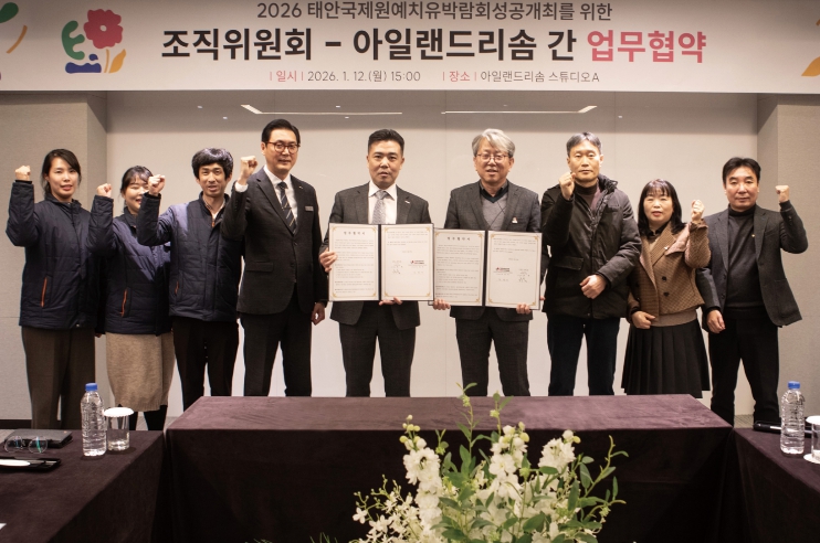 [뉴스앤톡] 태안국제원예치유박람회 조직위원회는 1월 12일 태안군 안면읍 아일랜드 리솜에서 조직위와 아일랜드 리솜이 업무협약을 체결했다고 밝혔다.