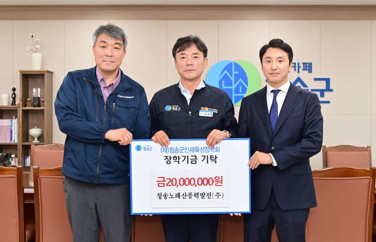 [뉴스앤톡] 청송노래산풍력발전(주)은 지난 16일 지역사회와의 상생 및 미래 인재 육성을 위해 (재)청송군인재육성장학회에 장학금 2천만 원을 기탁했다.
