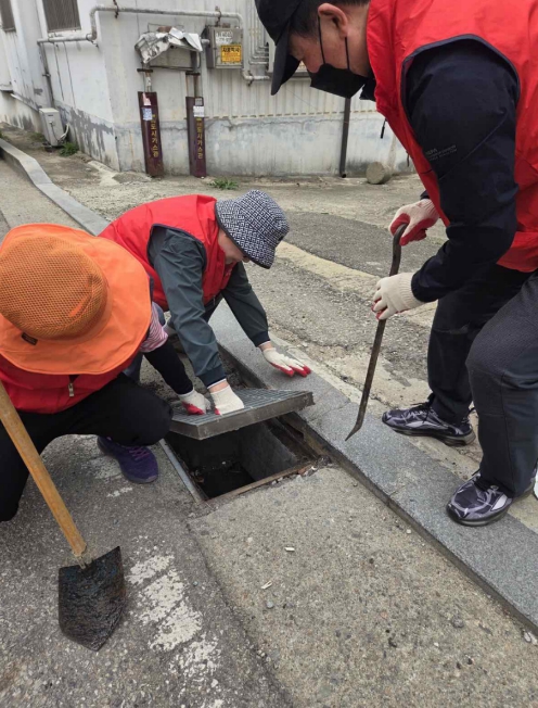 | ▲ 오산시 신장2동, 통장단협의회와 수해 대비 빗물받이 점검·청소 실시 |
