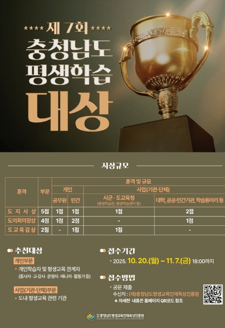 ▲ 2025년 충남 평생학습대상 주인공을 찾습니다!