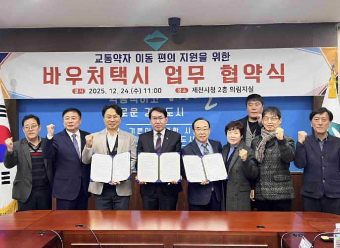[뉴스앤톡] 제천시는 지난 24일 교통약자의 이동권 보장과 이동 편의 증진을 위해 청풍호콜센터, ㈜티머니 모빌리티와 바우처택시 업무협약을 체결했다.