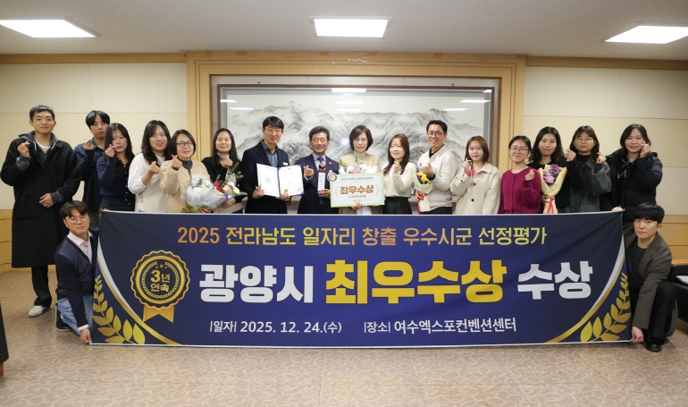 시 관계자는 “이번 수상은 산업위기 속에서도 시민과 기업, 행정이 함께 힘을 모아 이뤄낸 값진 성과”라며, “광양시는 청년이 머물고 기업이 성장할 수 있는 지속 가능한 일자리 정책으로 지역 경제에 활력을 불어넣고, 시민 모두가 체감할 수 있는 고용 안정을 실현해 나가겠다”고 말했다.