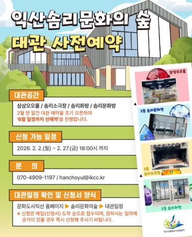 | ▲ 익산솜리문화의 숲, 상반기 대관 접수 |