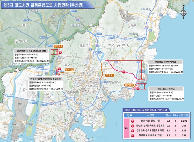 ▲ 제5차 대도시권 교통혼잡도로 사업현황(부산권)