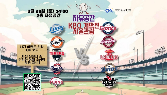 | ▲ 안성시청소년수련관 자유공간, 프로야구 개막 맞아 '야구 자율관람 이벤트' 운영 |