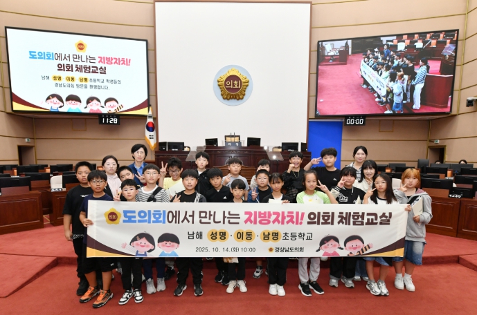 [뉴스앤톡] 경상남도의회는 14일 남해 소규모 공동학교(성명초, 이동초, 남명초) 5학년 학생 20명을 대상으로 도의회에서 만나는 지방자치! 의회체험교실을 개최했다.