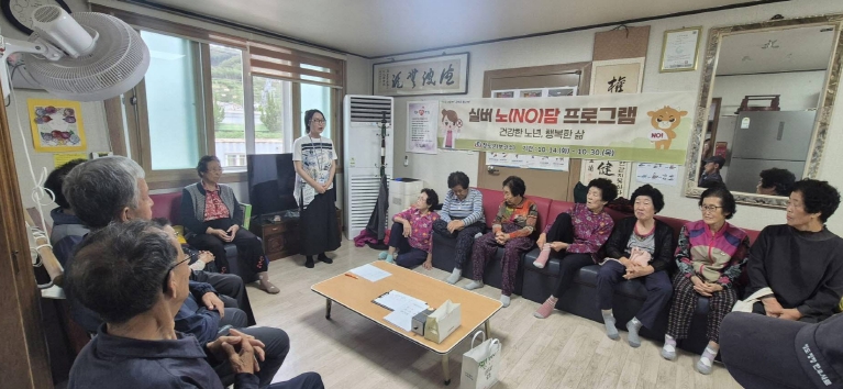 [뉴스앤톡] 청도군은 어르신들의 건강한 노년 생활을 돕기 위해 다로리 경로회관을 이용하는 어르신 24명을 대상으로 10월 14일부터 10월 30일까지 ‘실버 노담 프로그램’을 운영한다.