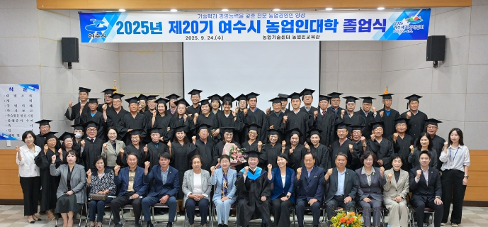 [뉴스앤톡] 여수시는 지난 24일 농업기술센터 농업인교육관에서 ‘2025년 농업인대학 졸업식’을 열고 60명의 졸업생을 배출했다고 밝혔다.
