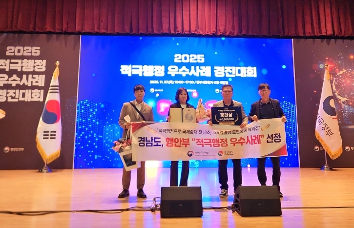 [뉴스앤톡] 경남도가 지난 27일 열린 행정안전부 ‘2025년 적극행정 우수사례 경진대회’에서 ‘적극행정으로 국제중재 첫 승소, 138억 절감 도민에게 돌려줘’ 사례로 기관 표창(인사혁신처장상)을 받았다고 28일 밝혔다.