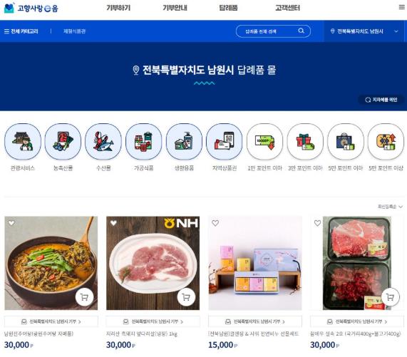 ▲ 남원시 고향사랑기부제 답례품 확대, 총 70종 선보여