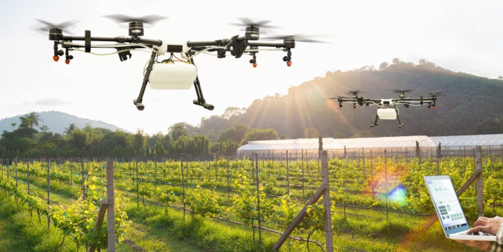 | ▲ - 밀양시가 추진하는 ‘2050 미래농업’ 프로젝트가 그리는 첨단 스마트 농업의 미래상. 드론과 ICT 기술을 활용해 생산성을 극대화하는 데이터 기반 농업 현장을 시각화한 이미지(AI 생성). |