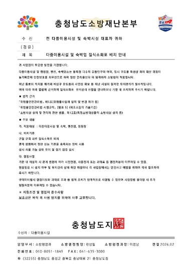 홍성소방서는 소방기관에서는 어떠한 경우에도 개인 명의 계좌로 물품 대금을 요구하지 않으며, 전화로 선입금을 요청하는 일 또한 없다고 강조했다. 아울러 모든 물품 구매는 공문서와 정식 계약 절차에 따라 진행된다고 밝혔다.