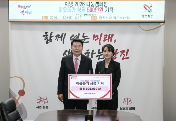 오성환 당진시장은 “어려운 시기에도 따뜻한 나눔을 실천해 주신 ㈜디케이로드에 깊이 감사드린다”며 “기탁해 주신 성금은 꼭 필요한 곳에 소중히 사용하겠다”고 전했다.