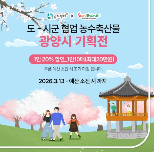 [뉴스앤톡] 광양시는 제25회 광양매화축제를 맞아 3월 13일부터 22일까지 남도장터 시군몰(광양시)에서 지역 농·특산물 기획전을 진행한다고 밝혔다.