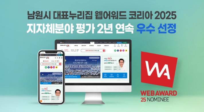 [뉴스앤톡] 남원시 대표 누리집이 사단법인 한국인터넷전문가협회가 주최하는 ‘웹어워드 코리아 2025’에서 2년 연속 지자체 분야 우수에 선정됐다.