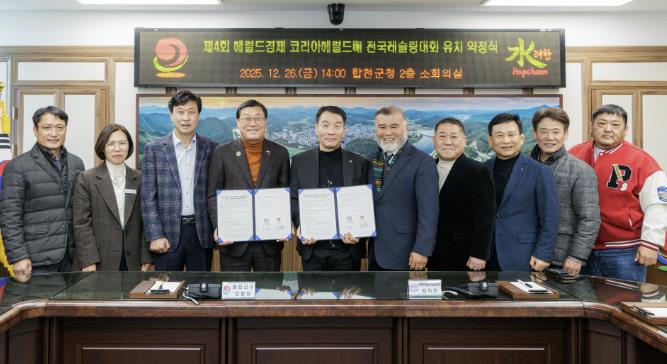 [뉴스앤톡] 합천군은 12월 26일 합천군청에서 ‘제4회 헤럴드경제 코리아헤럴드배 전국레슬링대회 및 제4회 전국생활체육 레슬링대회’ 유치 협약을 체결했다고 밝혔다.