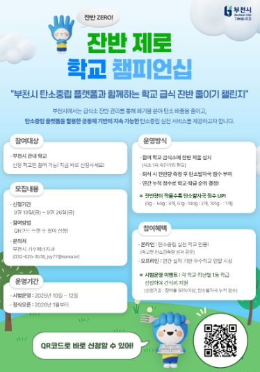 “잔반 없는 학교 급식소” 부천시, 학교 대상 탄소중립 챔피언십 개최