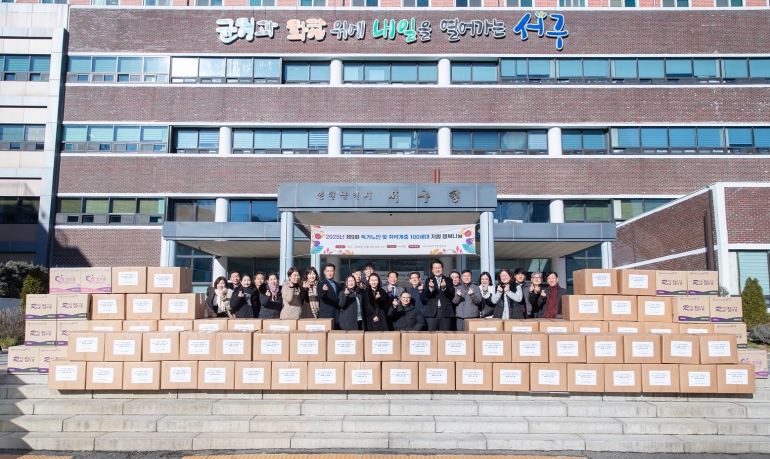 강범석 서구청장은 “매년 겨울 따뜻한 마음을 모아 진정한 나눔을 실천하는 서구 사회적기업협의회에 감사드리며, 정성스럽게 만들어 주신 선물꾸러미와 함께 많은분들의 마음을 꼭 필요한 분들께 전달하겠다”라고 감사 인사를 전했다.