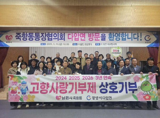 황정용 다압면 이장협의회 부회장은 “이번 교류행사가 다압면과 죽항동이 정을 나누고 협력을 넓혀가는 뜻깊은 자리가 되기를 바란다”며 “앞으로도 지속적인 교류를 통해 두 지역의 우의가 더욱 깊어지길 기대한다”고 말했다.